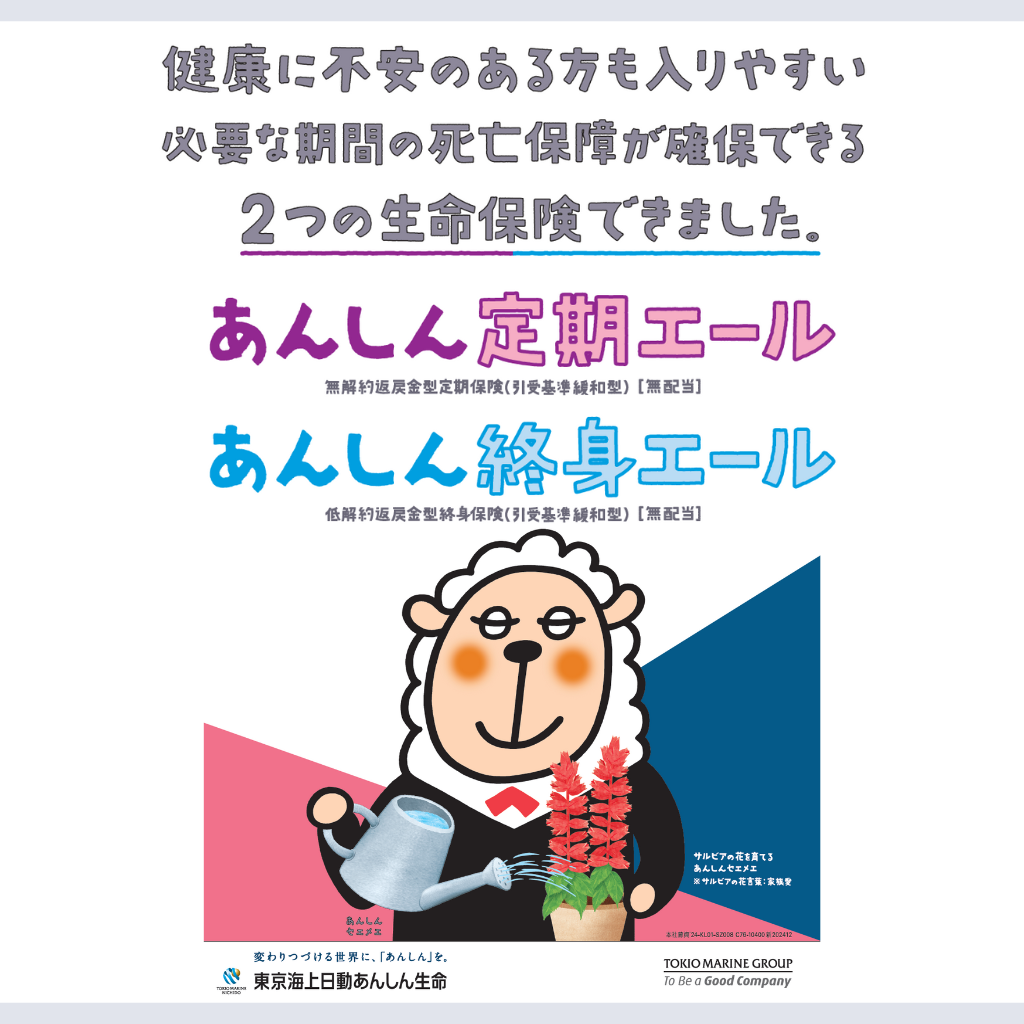 健康に不安のある方も入りやすい死亡保障、「あんしん定期エール」・「あんしん終身エール」です。